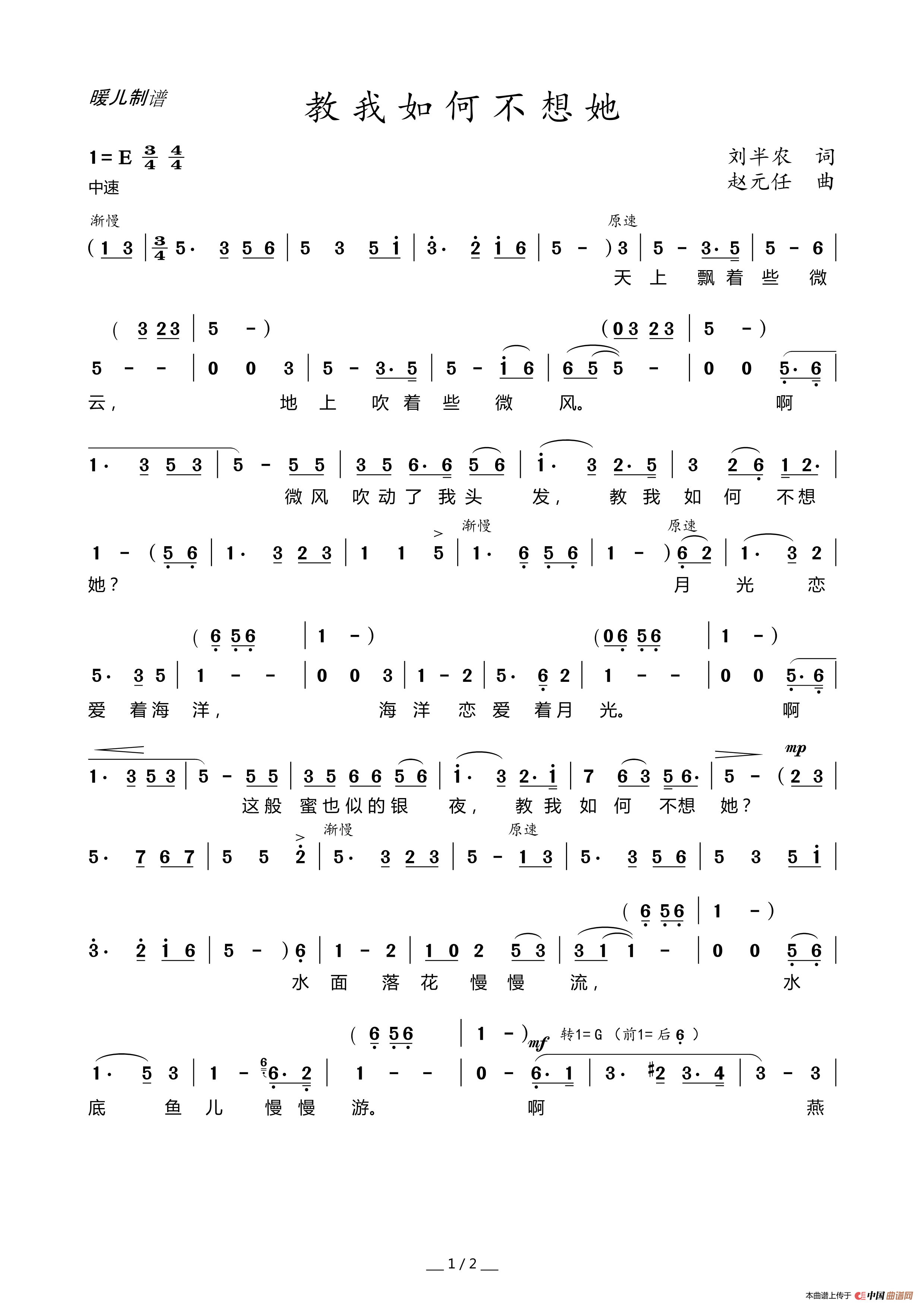 教我如何不想她简谱的结果_百度图片