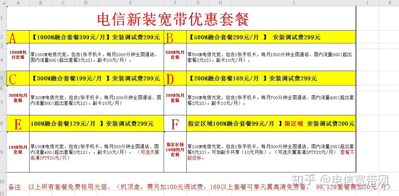 东莞电信宽带价格表_电信宽带套餐办理【