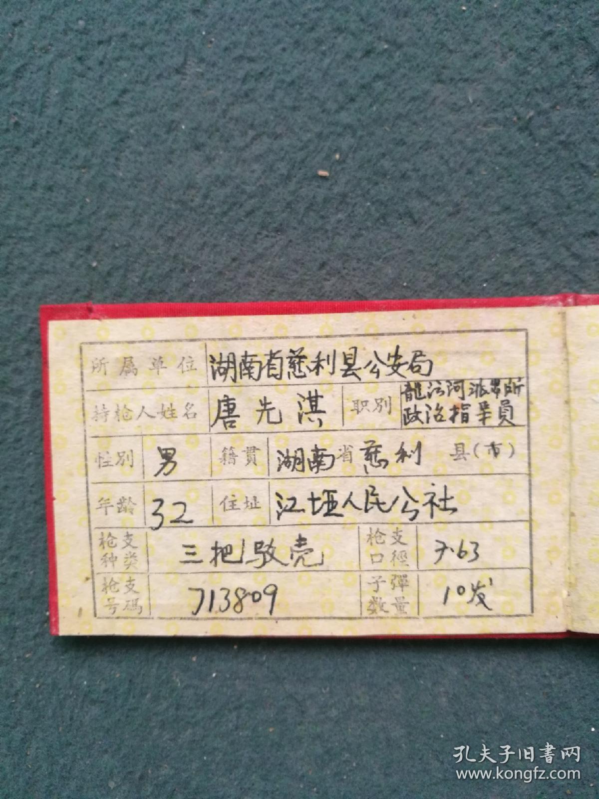 布面精装,1965年,有登记像,湖南省《持枪证》