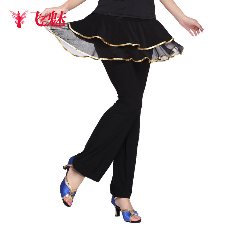 飞魅舞蹈服装广场舞裤裙拉丁舞裤子金边纱
