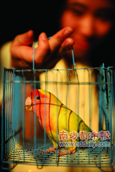 这只黄桃鹦鹉名叫大鸡