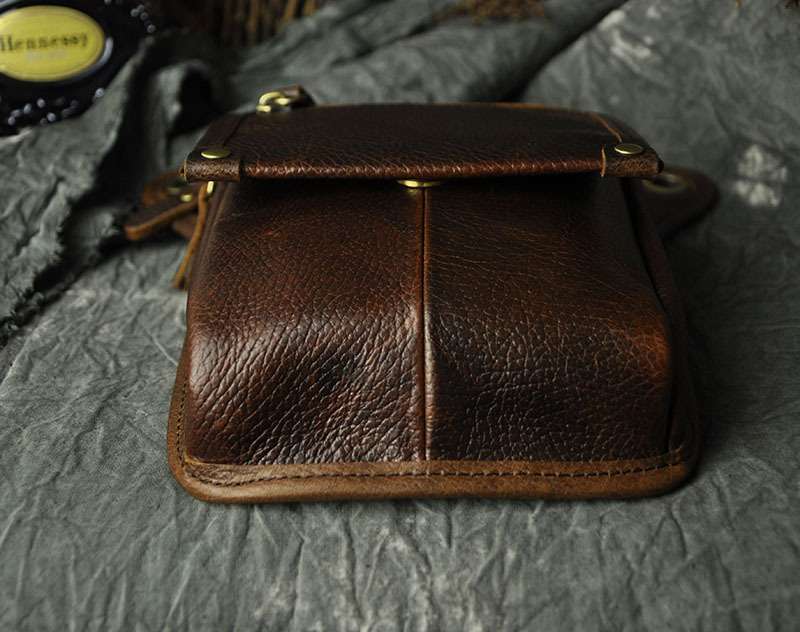 我的包包 多功能真皮腰包腿包 户外运动8寸疯马皮斜跨包 油蜡牛皮休闲包 头层牛皮男包 荔枝纹手机包