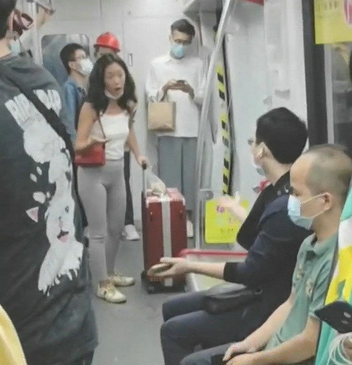 女子地铁里嗑瓜子!用英文和乘客对骂!装X