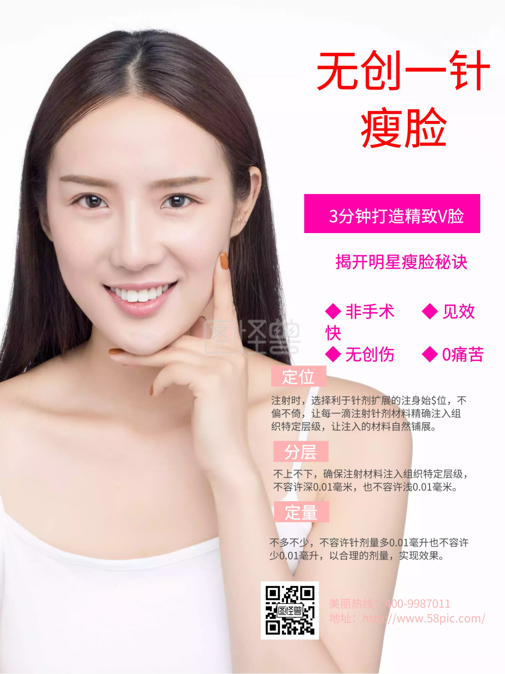 简介:瘦脸针即A型肉毒素针剂 ,首要作用于肌肉组织,因常用解决咬肌肥大,被称为瘦脸针。瘦脸针专业名称为肉毒