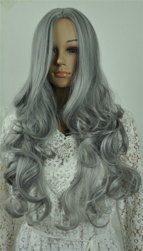 Gray Color Wigs Long Wave Big Bang