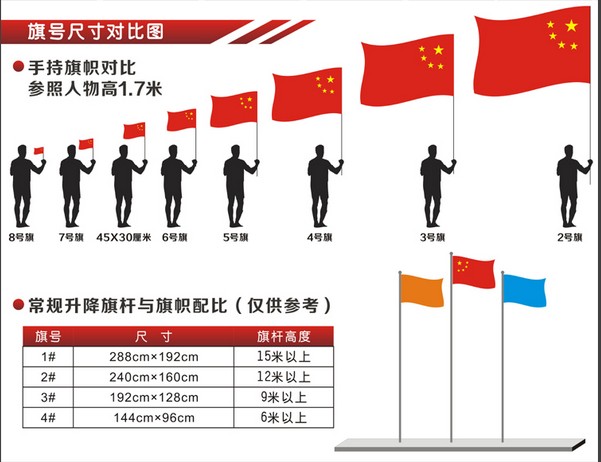 导游旗 基本规格:1号旗:2.88*1.92 2号旗:2.4*1.6 3号旗:1.92*1.28 4号旗:1.4