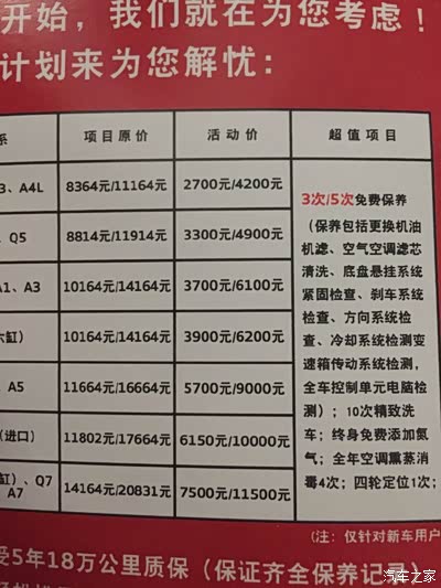 奥迪A4L保养价格---跟帖上传保养价格送米了