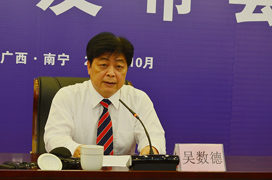 图文-奥运圣火在广西南宁传递 吴数德挥手致意