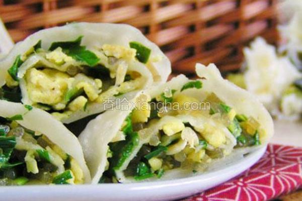 简介:食材小麦面粉、鸡蛋、韭菜、粉条、虾皮。做法1、馅料:韭菜、鸡蛋3个、粉条,加一些虾皮做点缀,亦可加入炸