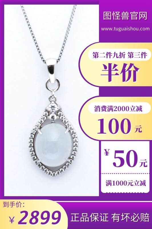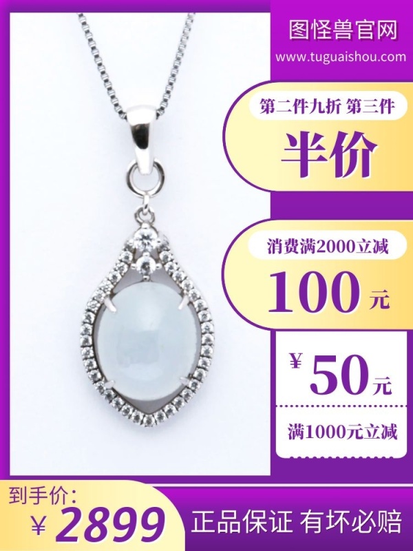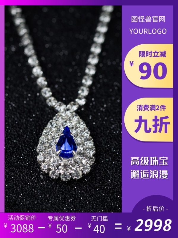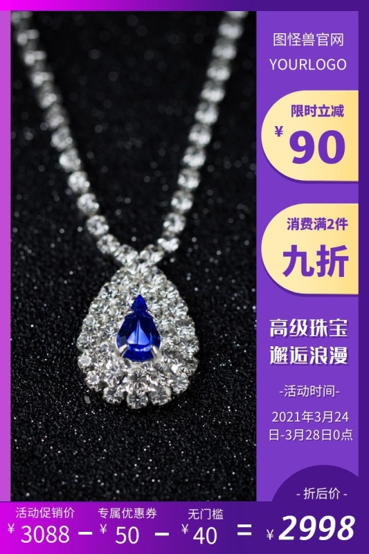 珠宝珠宝配饰促销价紫色大气主图直通车