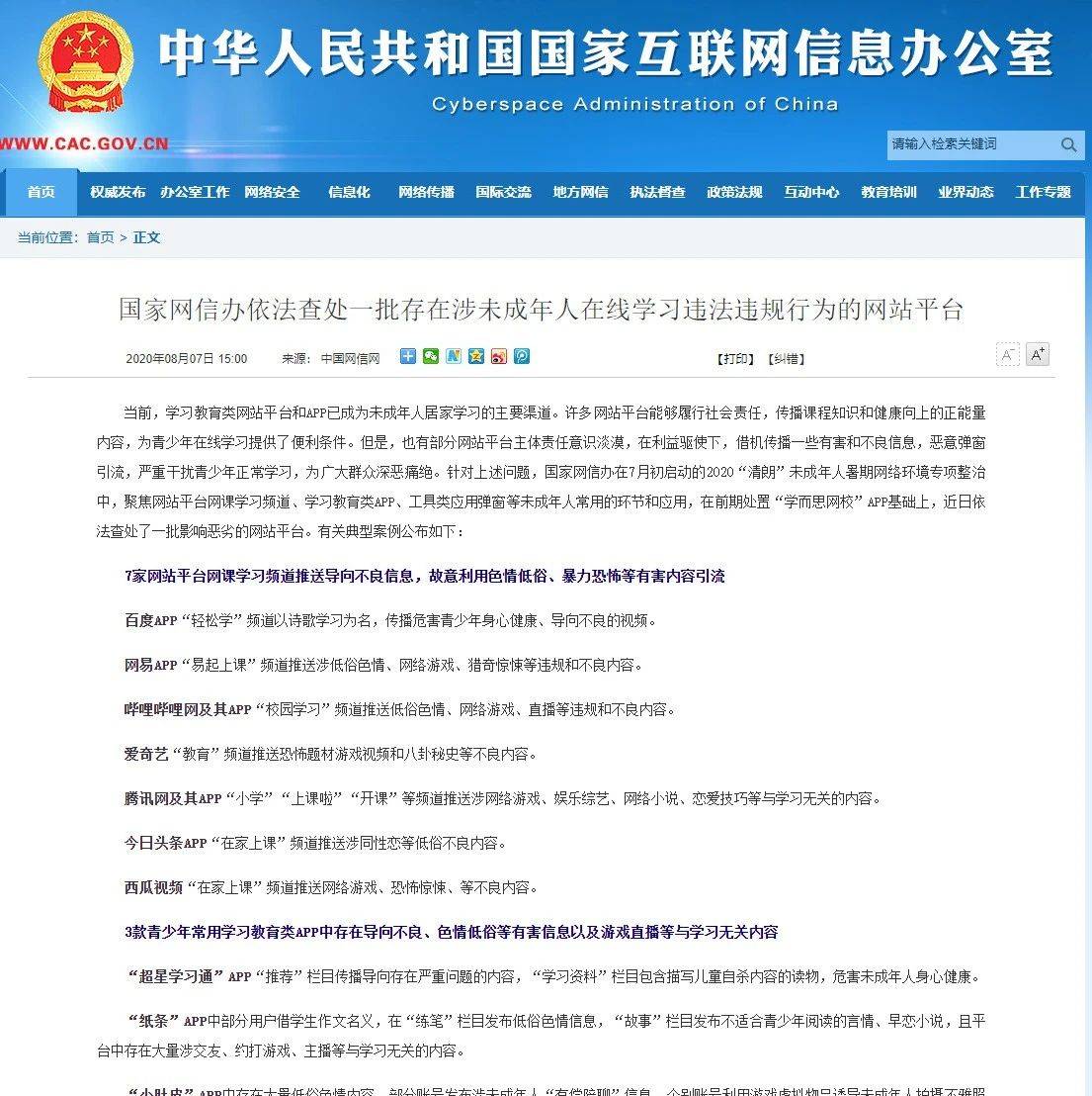等多家涉未成年人在线学习网站平台被查处