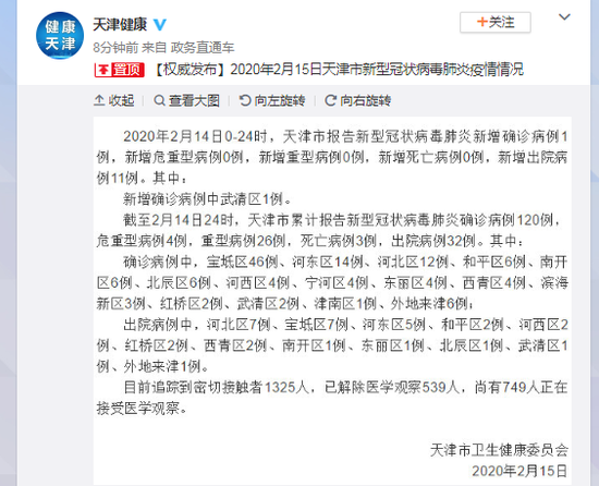 天津市新增新冠肺炎确诊病例1例,累计120例