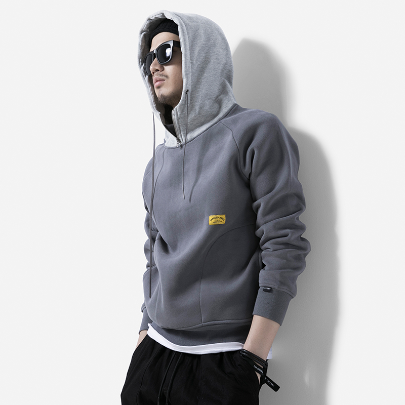 冬季卫衣男连帽加绒加厚高领套头抓绒韩版