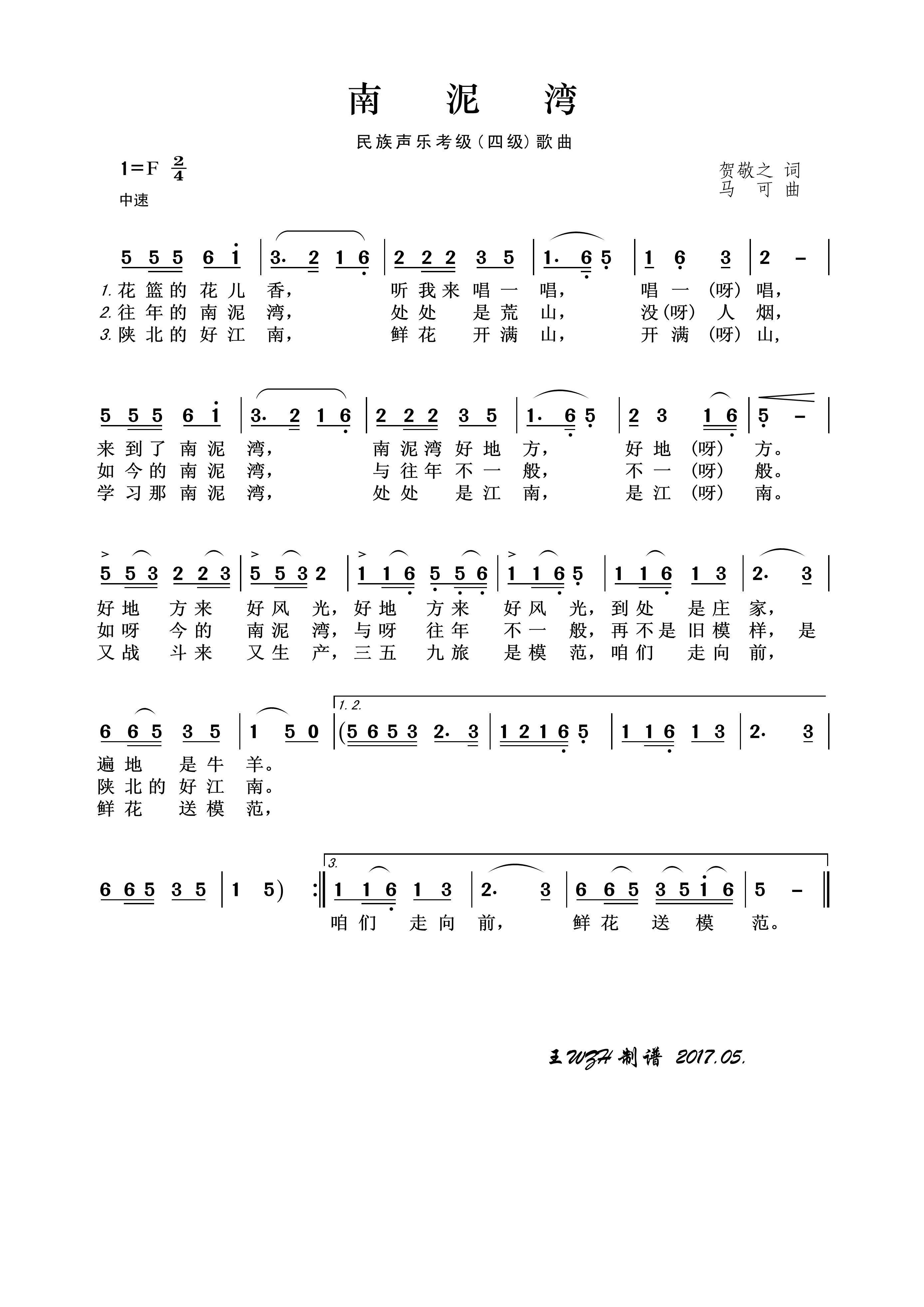 南泥湾 民族声乐考级歌曲 歌谱 简谱