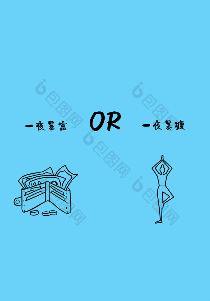 蓝色手绘简洁简笔画个性钱包美女手机壁纸
