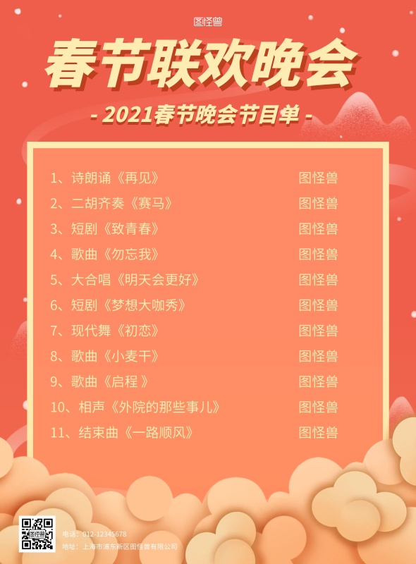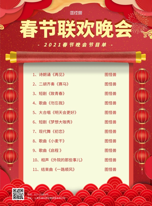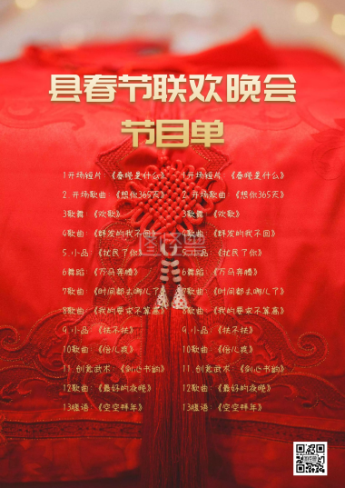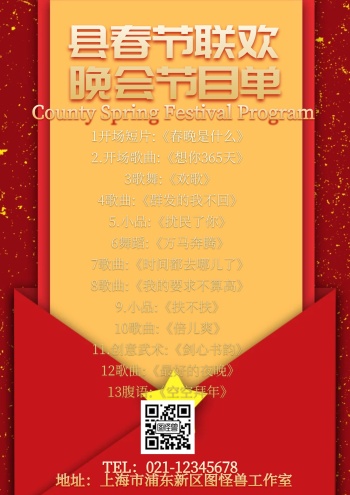 红色喜庆大气春节联欢晚会节目单竖版海报