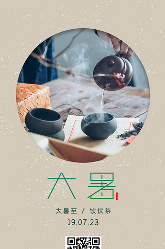中国风二十四节气大暑饮伏茶gif海报图片下载