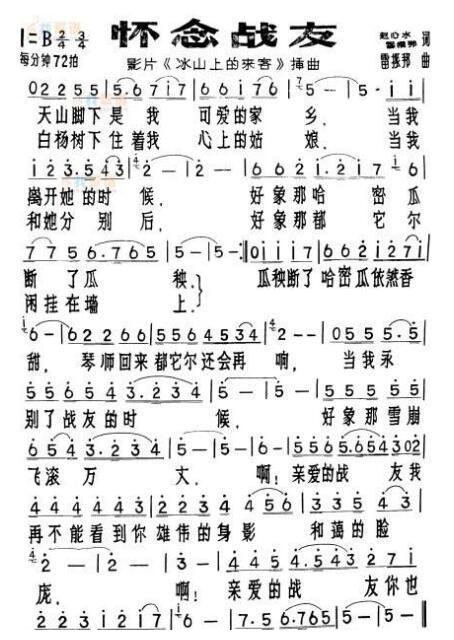 (YY)老歌曲《怀念战友》1963年雷振邦词曲李世荣原唱(附歌谱)