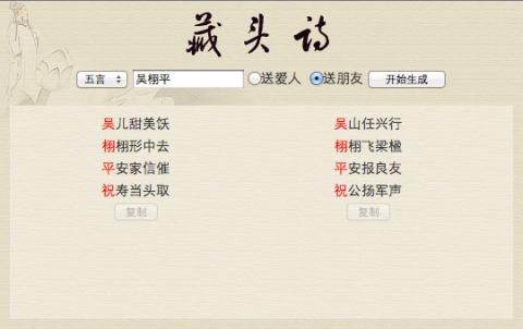 藏头诗生成器v1.5(姓名,爱情,祝福藏头诗等)