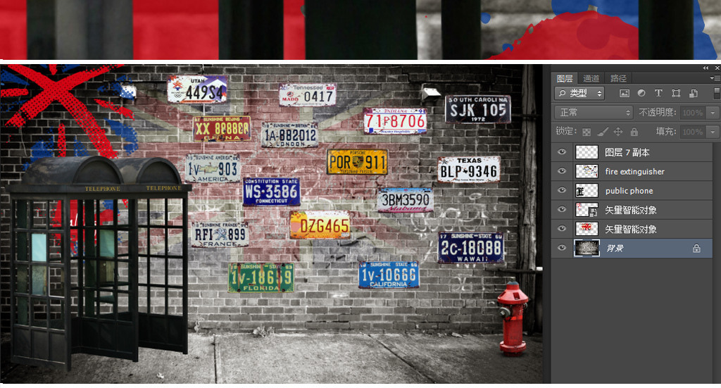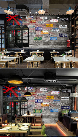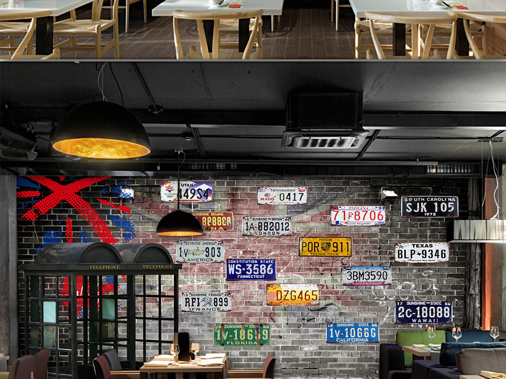 复古怀旧电话亭汽车车牌酒吧电视背景墙