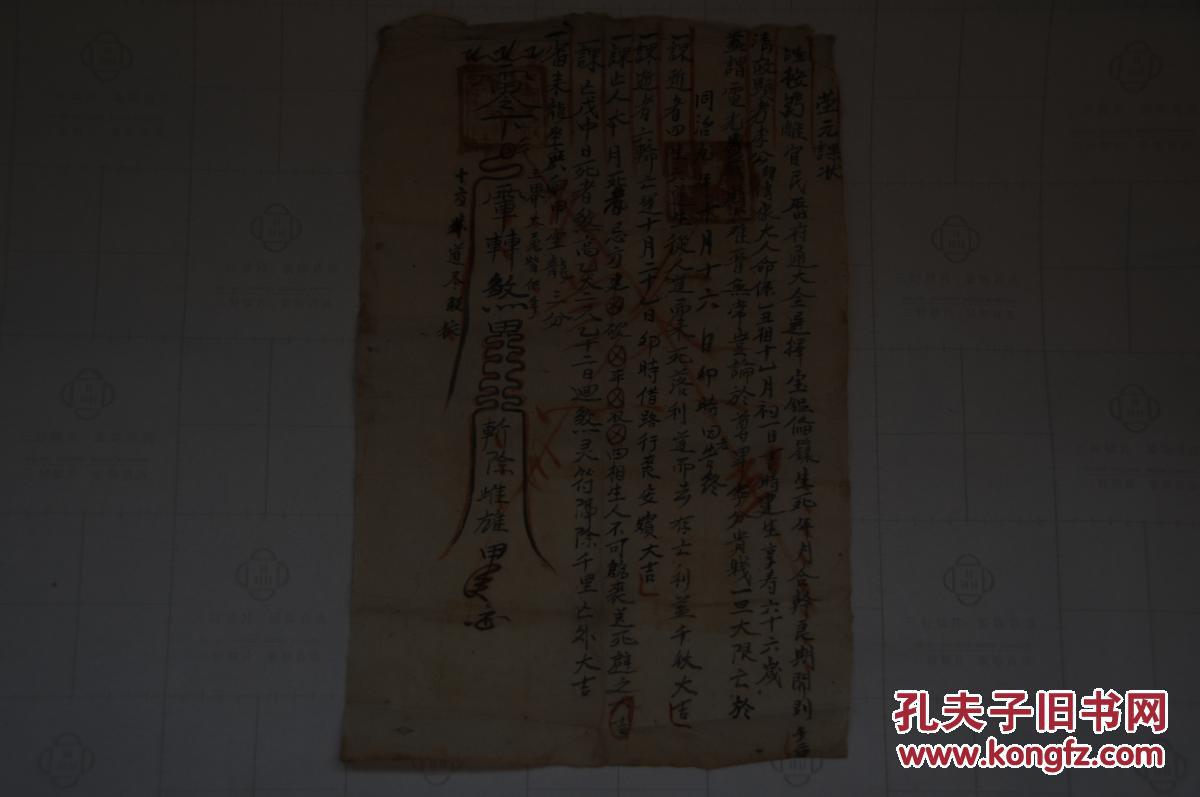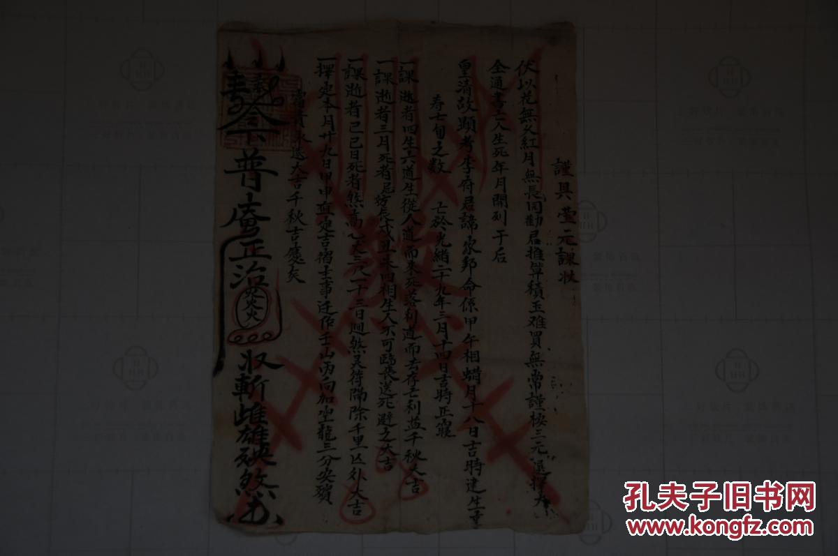 清代同治9年 道家超度亡人 茔元课状(朱砂