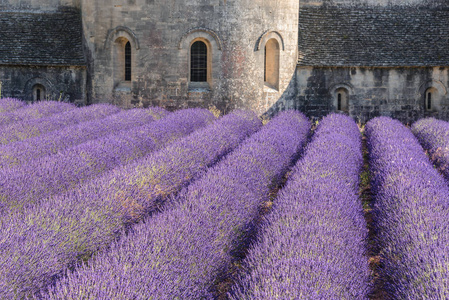与 Senanque 修道院戈尔德,法国普罗旺斯的熏衣草田