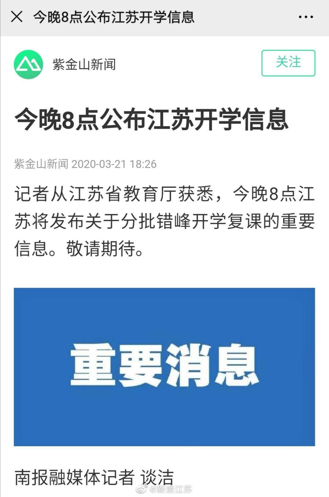 据@紫金山新闻 今晚8点江苏省教育厅将