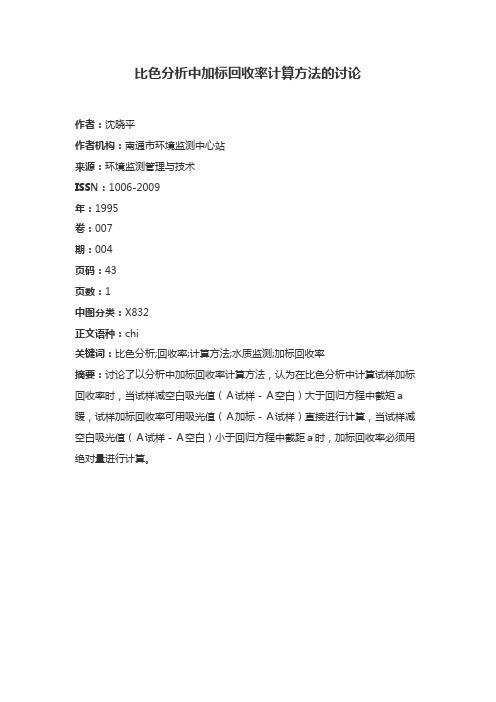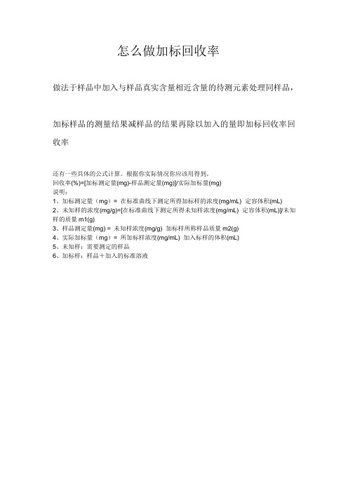 简介:加标回收率,是指在没有被测物质的样品基质中加入定量的标准物质,按样品的处理步骤分析,得到的结果与理