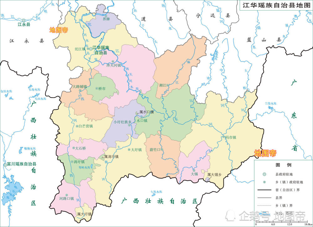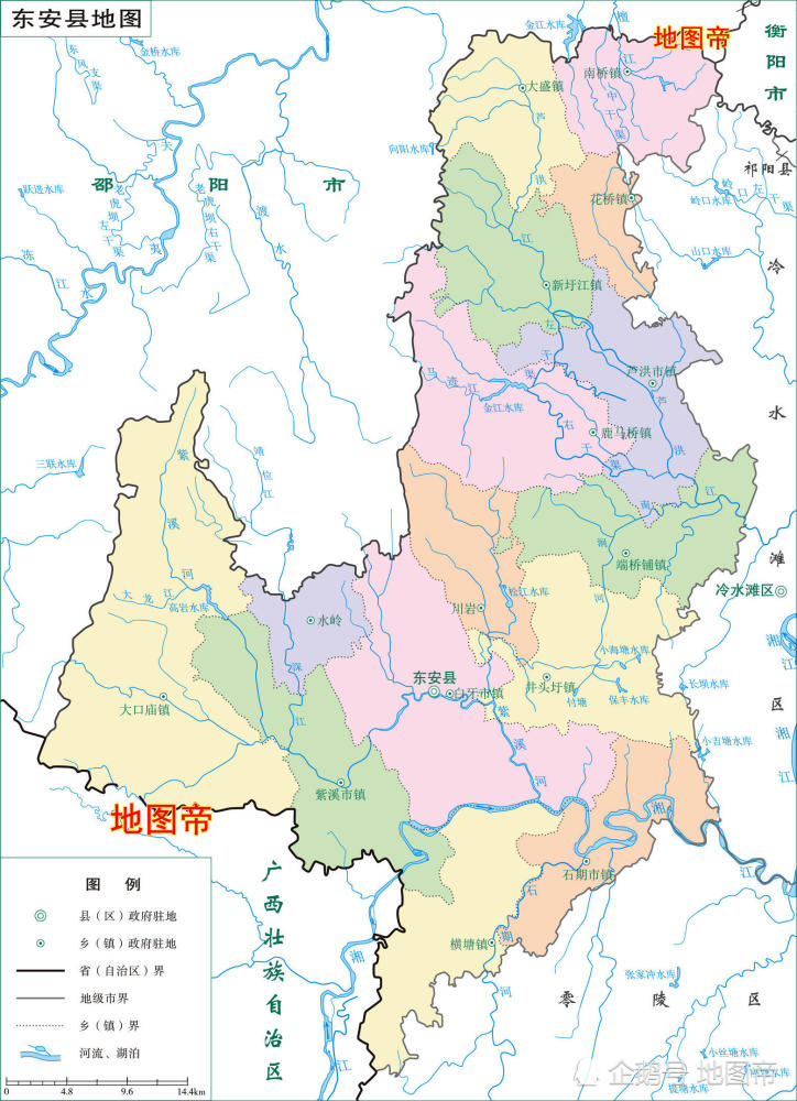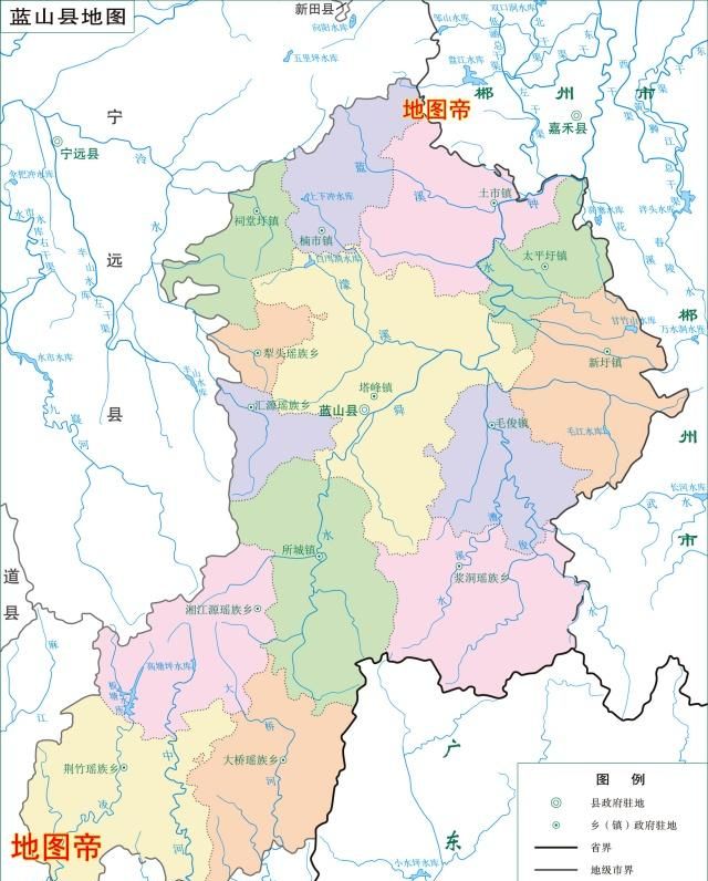 湖南面积第二大的永州市地图,辖9个县却