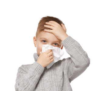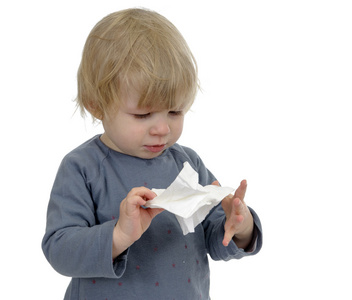 小孩感冒或过敏症组织中吹鼻子