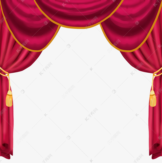 剧院舞台拉开红色的大幕。姹紫嫣红的卡通人物矢量图