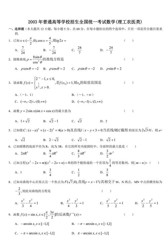 2003年高考江苏卷试题及答案·数学(四)(图)