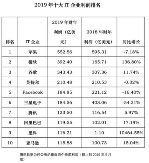 互联网iT业全年数据公布 2019年全球十大IT