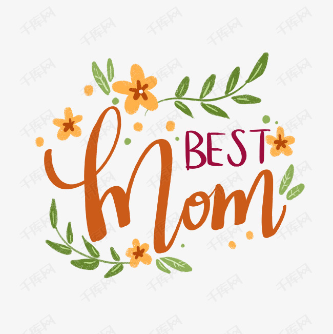 母亲节花朵装饰英文PNG免抠素材图片免费