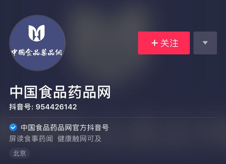 中国食品药品网官方抖音号上线啦