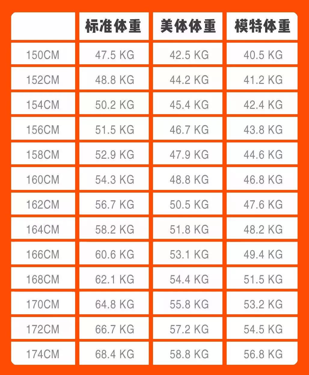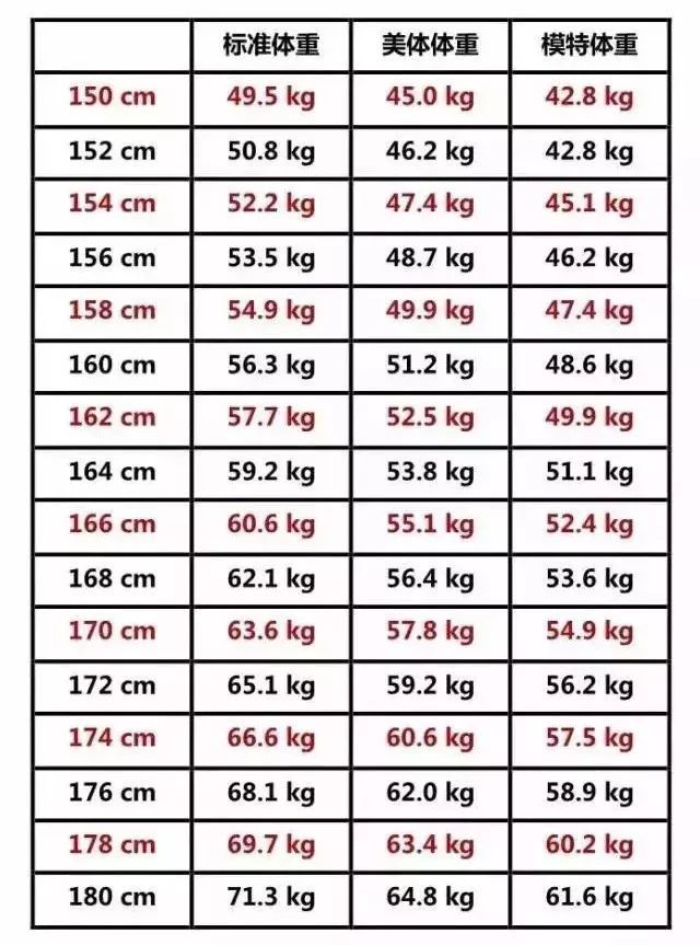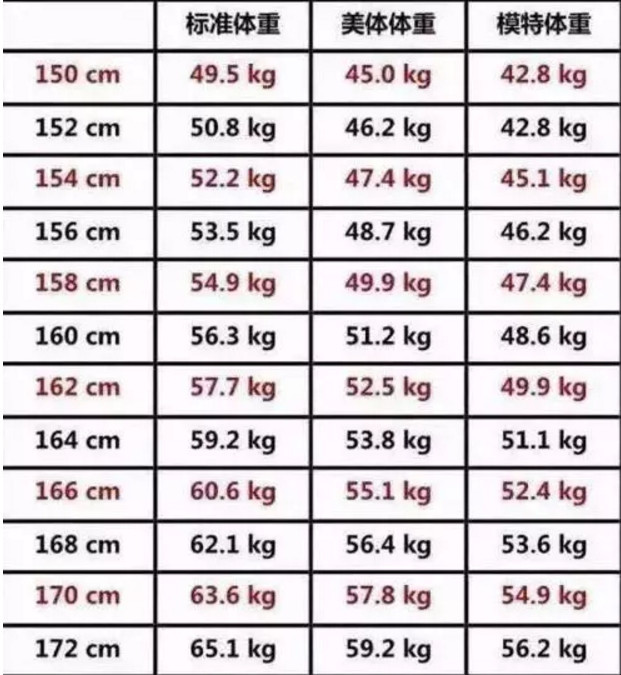 体重表 | 标准体重、美体体重、模特体重,你是哪种?