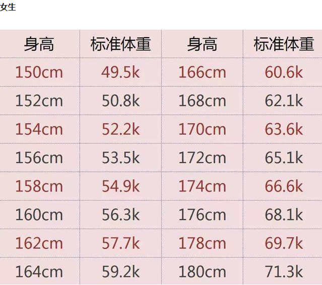 2019女生标准体重表出炉,请对号入座!