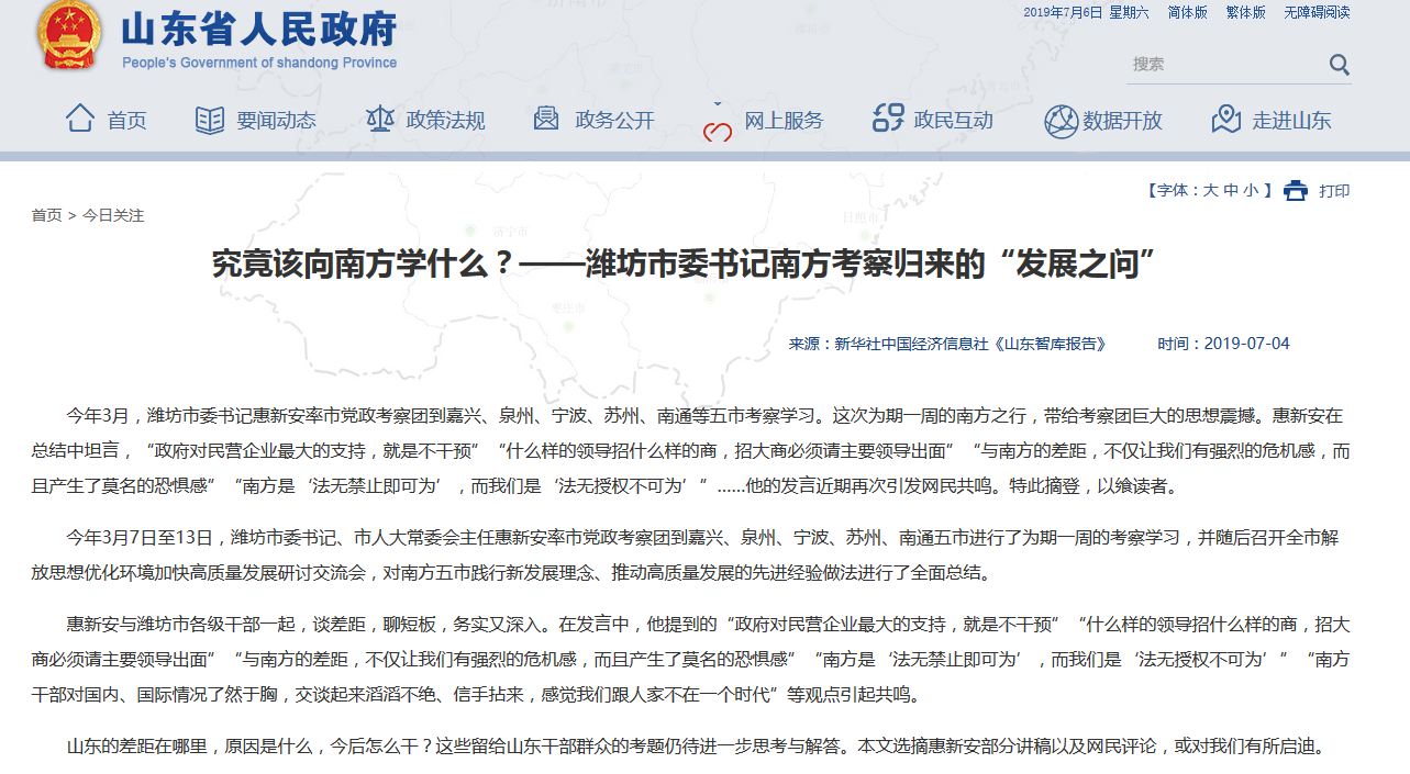 新京报:正视与南方差距 山东政府是真着急了