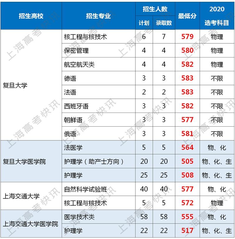 2019年复旦、交大上海市分专业录取分数线