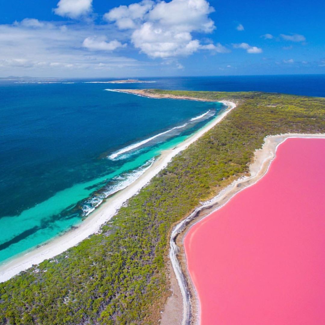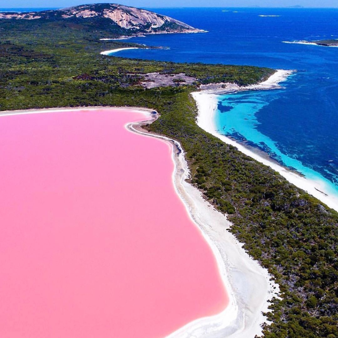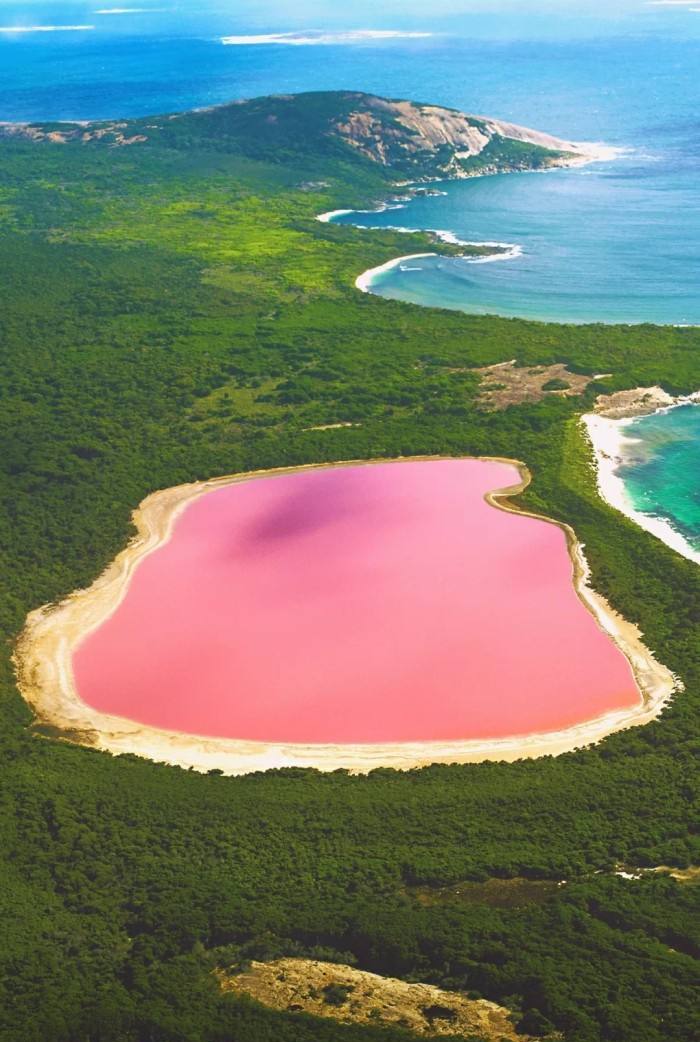 位于澳大利亚的赫利尔湖,湖水呈粉红色