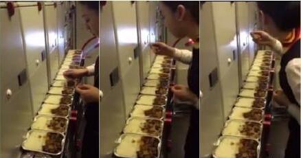 网曝空姐试吃多份飞机餐一盒一口 乌航