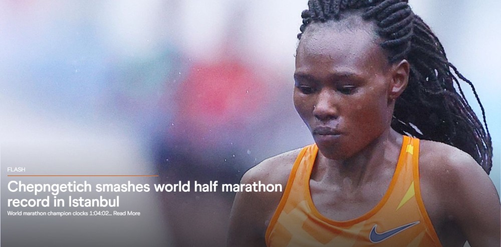 肯尼亚选手创造女子半马世界纪录 全程开挂