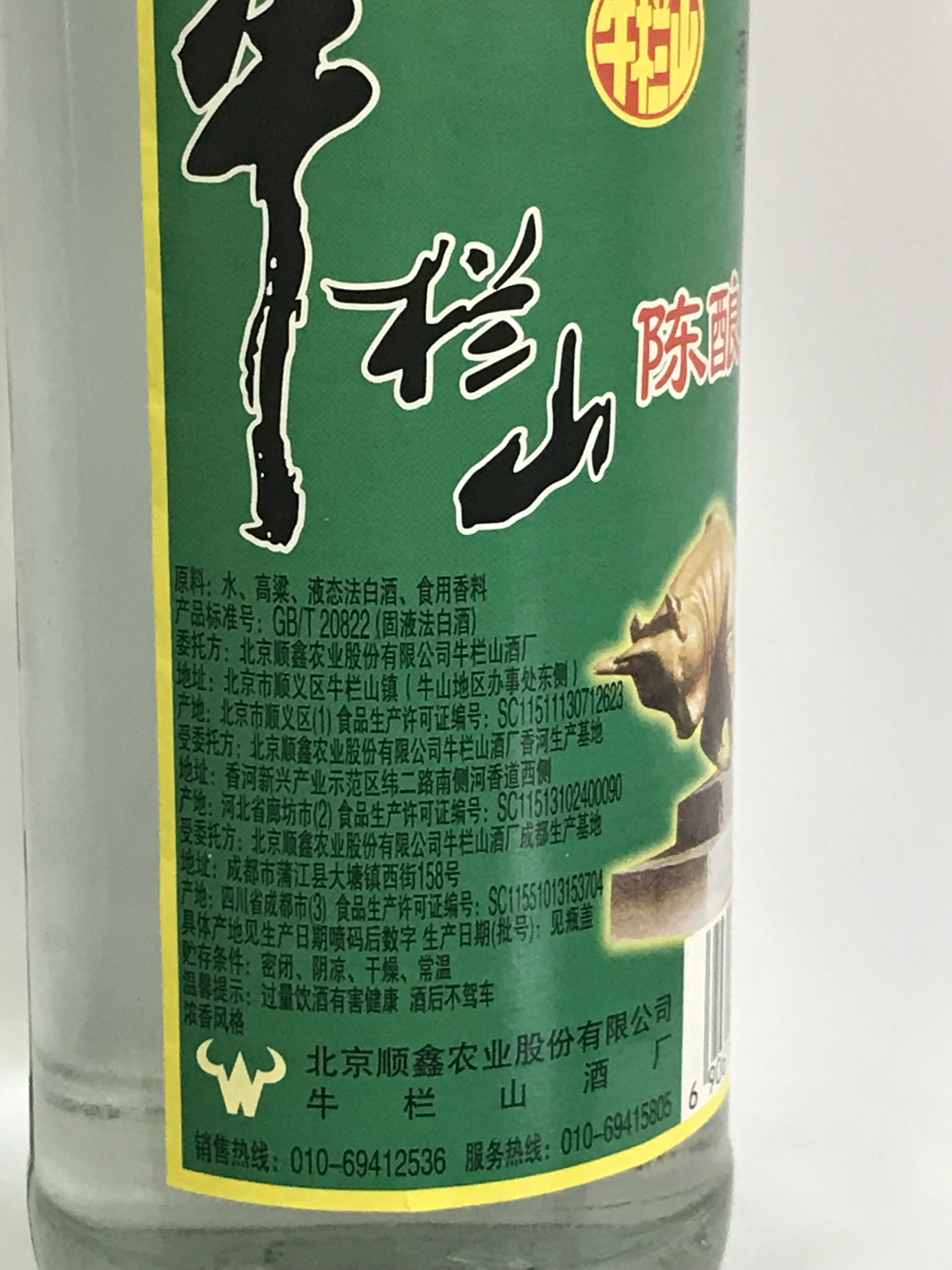 消费者质疑:牛栏山固液法白酒冒充陈酿白酒
