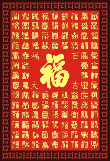 百福图矢量图片设计素材-高清cdr模板下载(0.23MB)-福字贴大全