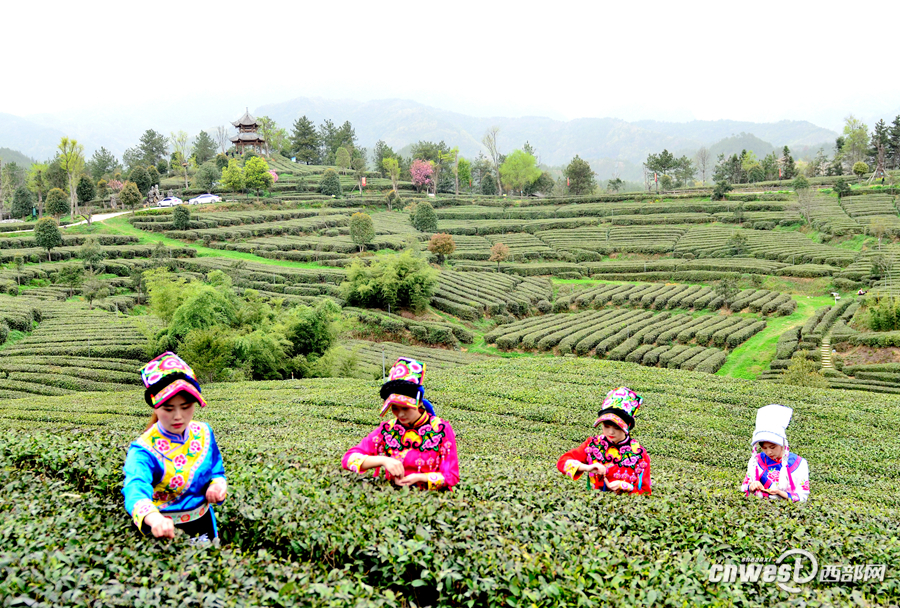 宁强13万亩有机茶进入采摘期 采茶女忙采