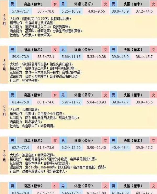 7个月宝宝身高体重标准表 4岁女宝宝身高