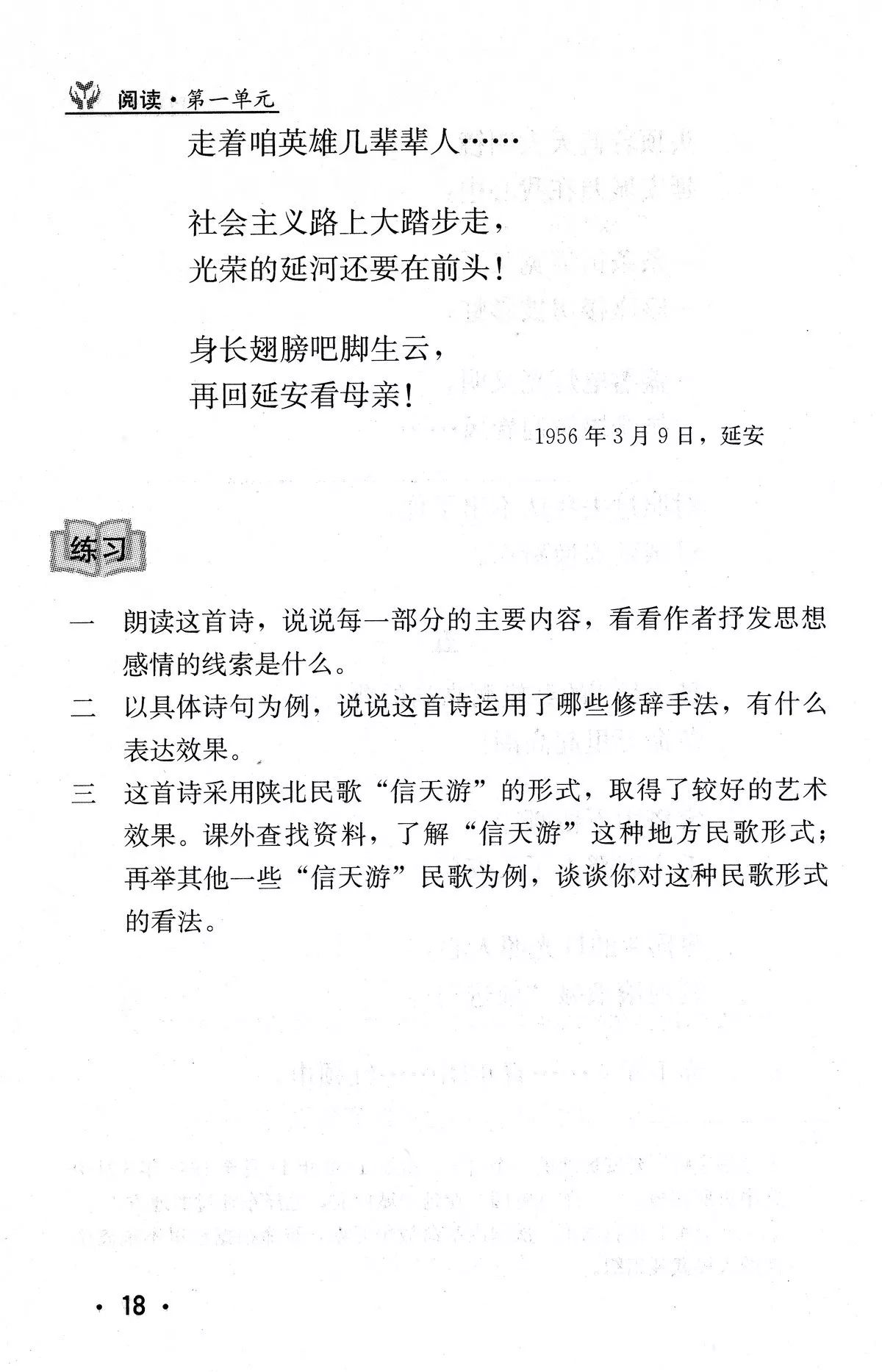 版八年级下册语文课后练习:1.2 回延安.pdf