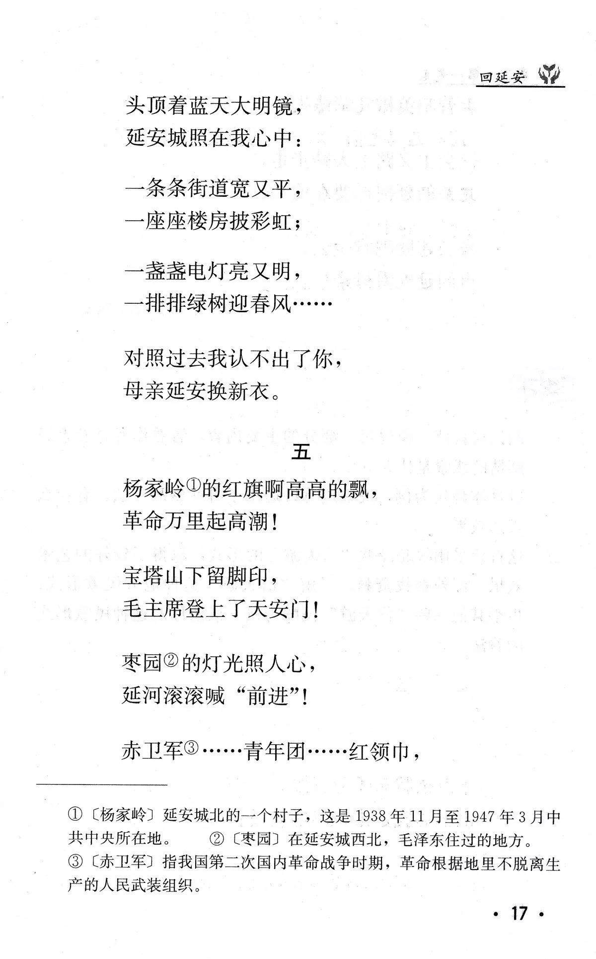 简介:《回延安》是一首采用民歌体形式写成的激情澎湃的诗篇、诗人以赤子之心歌颂了养育一代革命者的延安精神,