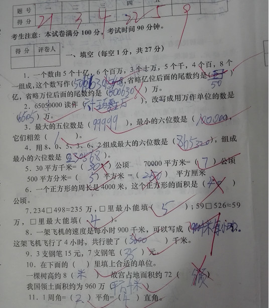 四年级数学中期考试,光计算题和解决问题