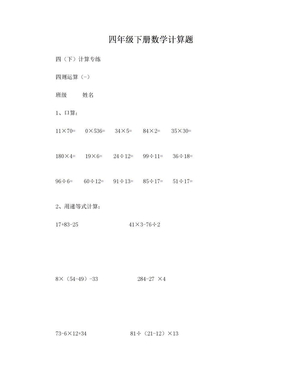 四年级下册数学计算题